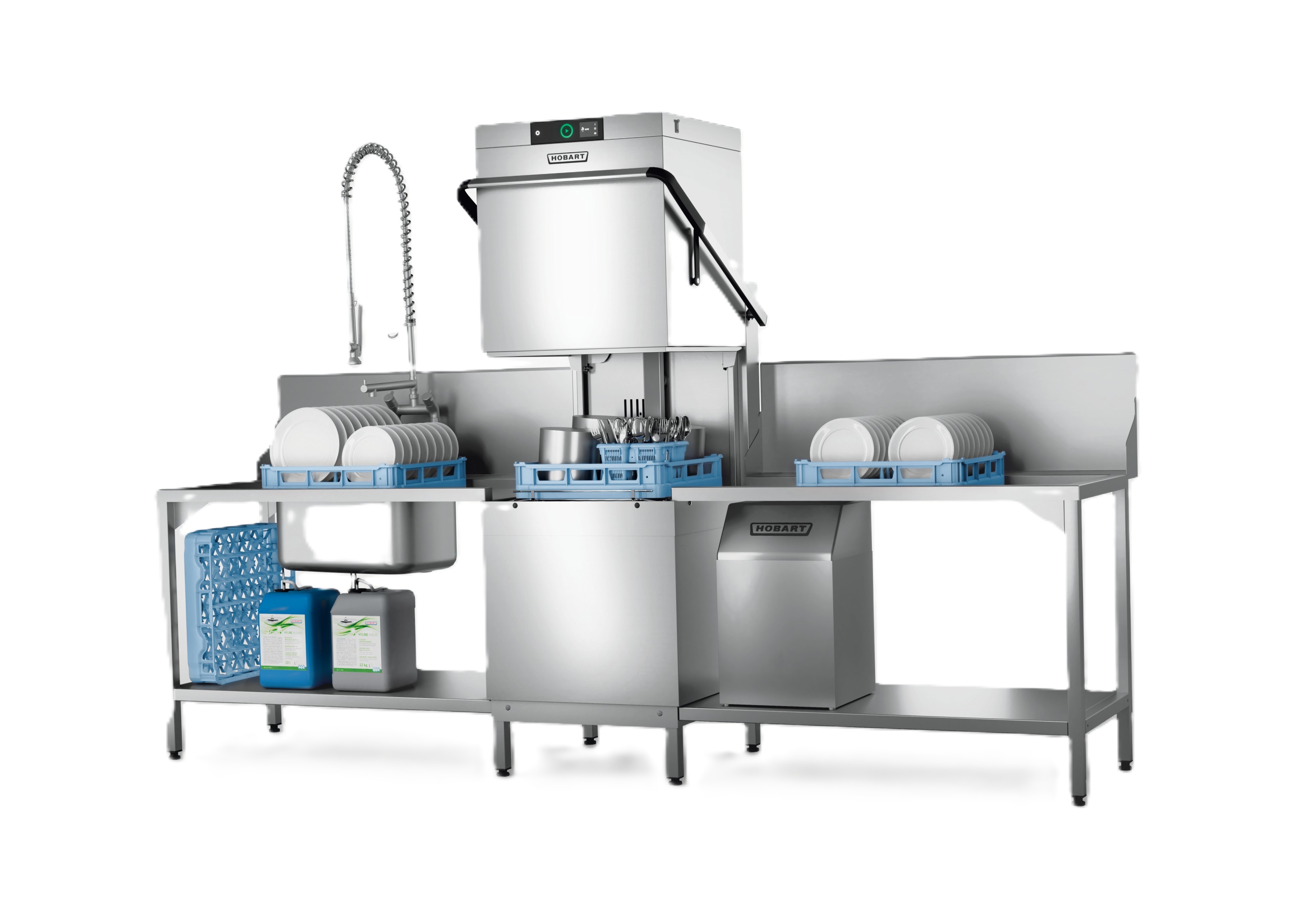 Bei der neuen Generation der Haubenspülmaschine ermöglichen mehrere smarte Features eine Reduktion des Verbrauchs von Wasser, Energie und Chemie. HOBART setzt auf intelligenten Ressourcenverbrauch und nutzt dazu eine Abluft-Wärmerückgewinnung: Das optionale Feature VAPOSTOP ER reduziert dabei den Energieverbrauch erheblich. In Kombination mit der allseitig geschlossenen Haube und einem Wärmetauscher wird ein hoher Effizienzgrad erreicht. Das Feature ist in die Maschine integriert und verhindert Energieverluste während und nach dem Spülvorgang, da kaum heißer Dampf entweicht. Anstatt die Energie in den Raum abzugeben, wird sie zum Erhitzen des einströmenden Frischwassers genutzt. So verringert sich der Gesamtenergieverbrauch der Maschine.