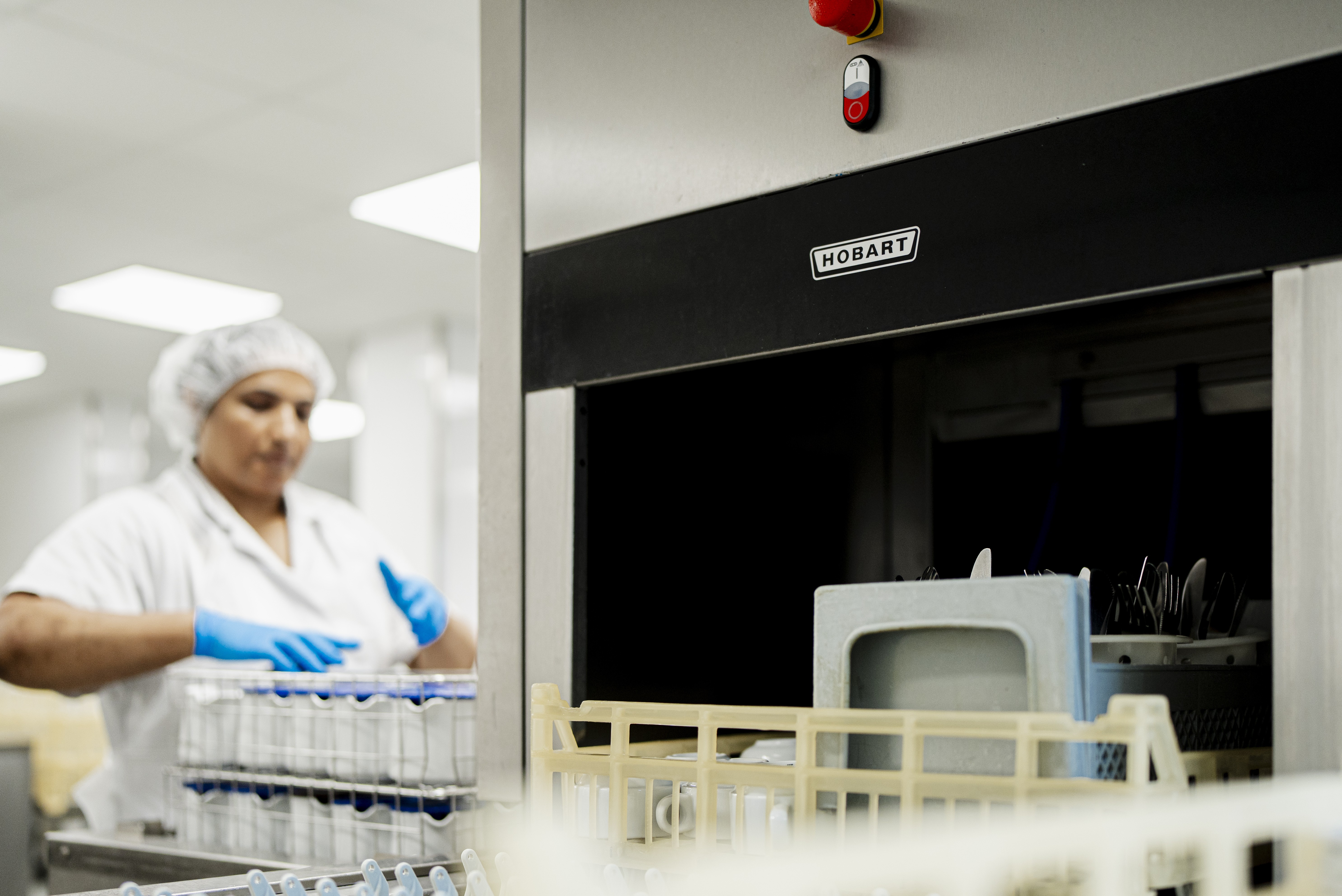 Modern, effizient und zukunftsorientiert - die neue HOBART FLOW Line bringt künstliche Intelligenz in die Großküchentechnik: Im Städtischen Krankenhaus Heinsberg ist künftig die Bandspülmaschine mit KI-Technologie im Einsatz.