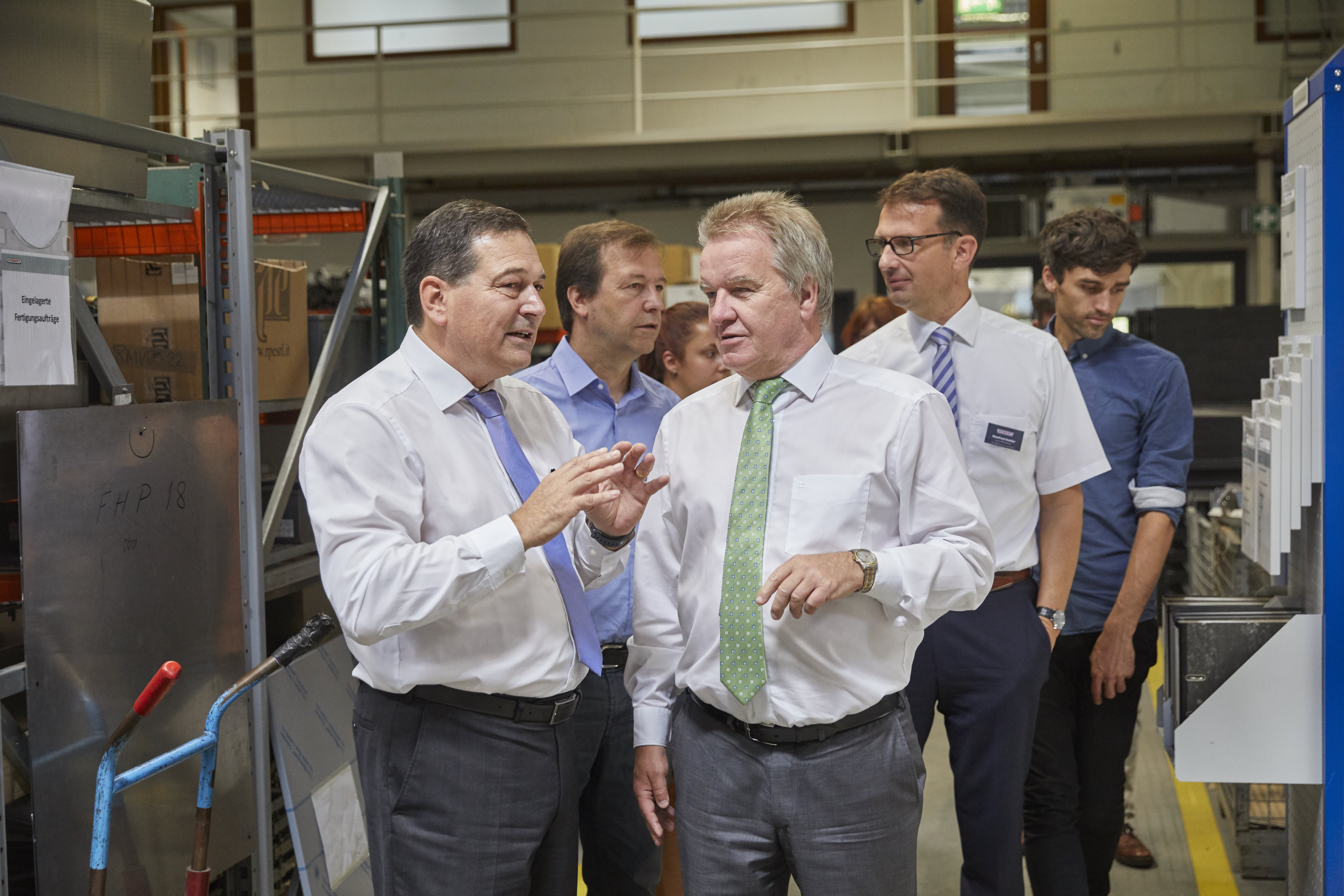 Offenburg - Der Minister für Umwelt, Klima und Energiewirtschaft, Franz Untersteller MdL, und der Lärmschutzbeauftragte des Landes, Thomas Marwein MdL, besuchten einen der weltweit führenden Hersteller gewerblicher Spültechnik und waren von der Innovationskraft sowie dem Konzept zur Ressourceneffizienz und Nachhaltigkeit von HOBART begeistert.