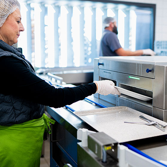 Das Beladungssystem HOBART SMART LOAD verspricht die doppelte Taktung von bis zu 60 Teilen pro Minute und verringert die körperliche Belastung des Personals.