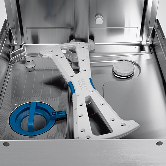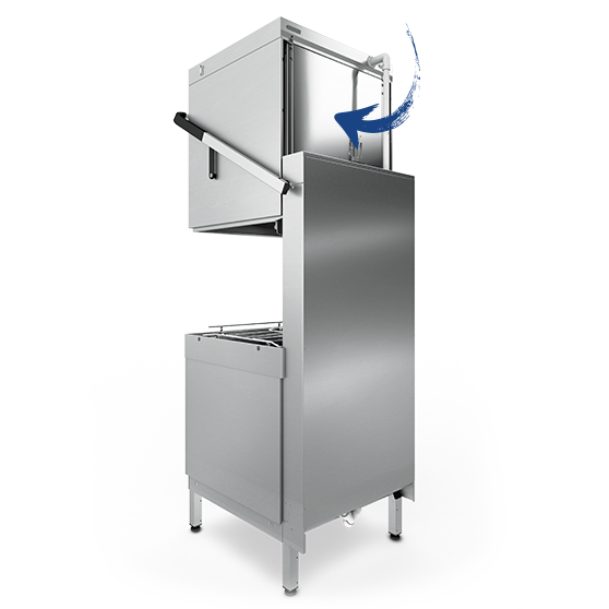 Benutzerfreundlichkeit, Zeitersparnis und Arbeitseffizienz in Küchen sind für uns ebenso wichtig wie die Reduzierung des Energie-, Wasser- und Chemieverbrauchs. Die neue Haubenspülmaschine wurde entwickelt, um die Betriebskosten durch Minimierung der Energieverluste, aber auch durch Rückgewinnung der Energie von Dampf und Abwasser, zu senken. Ein integriertes Reinigungskonzept und die automatische Schmutzentfernung sorgen für optimale und hygienische Spülergebnisse und tragen zur Senkung der Arbeitskosten bei, da Vorspülprozesse teilweise entfallen und der Zeitaufwand für die Reinigung der Maschine reduziert werden kann.