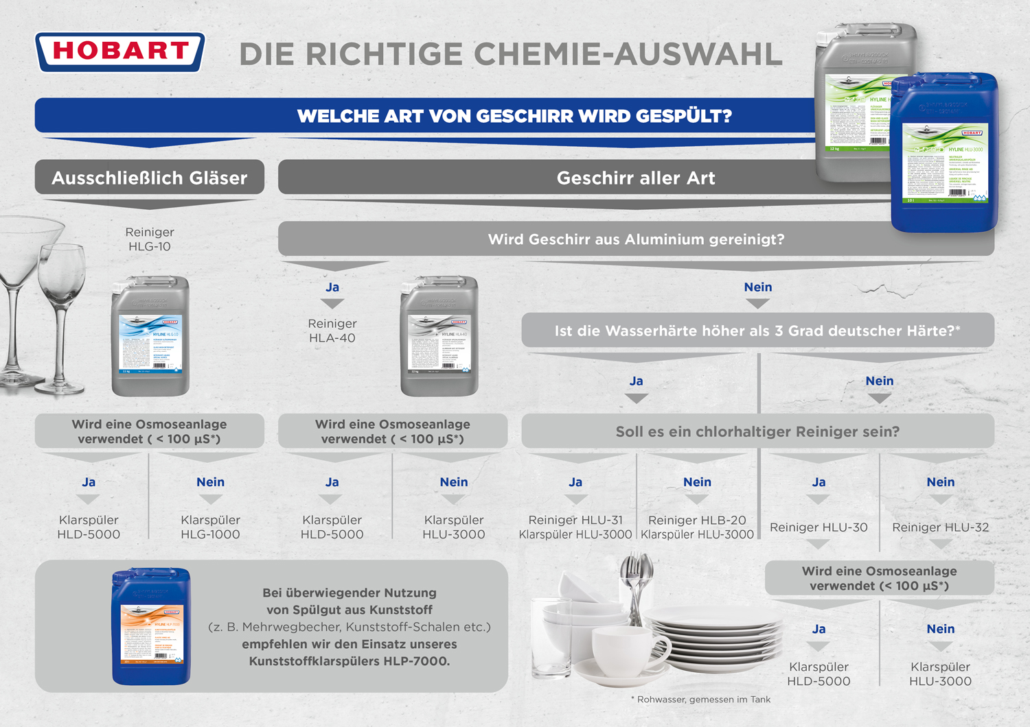 Je nach Wasserhärte und Art der Verschmutzung bietet HOBART mit HYLINE die passenden Produkte und überzeugt durch optimale Spül- und Trocknungsergebnisse bei allen Arten von Spülgut wie Porzellan, Glas, Besteck, Kunststoff oder Aluminium.