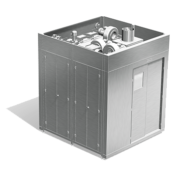Alle zur hygienischen Reinigung der Speisenverteilwagen benötigten Prozessschritte finden bei diesem Modell in einer einzigen Kammer statt: Dekontaminieren, Klarspülen, Trocknen.