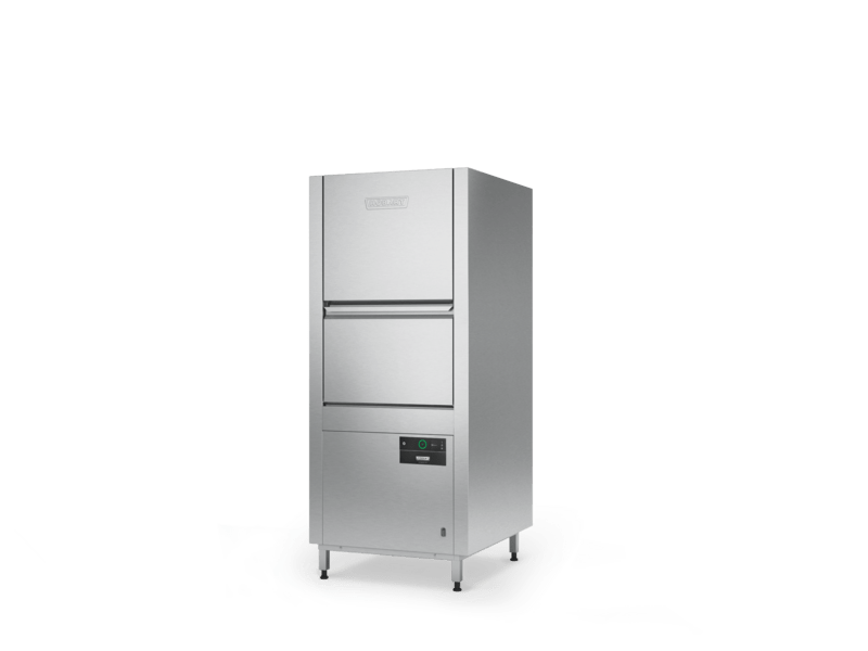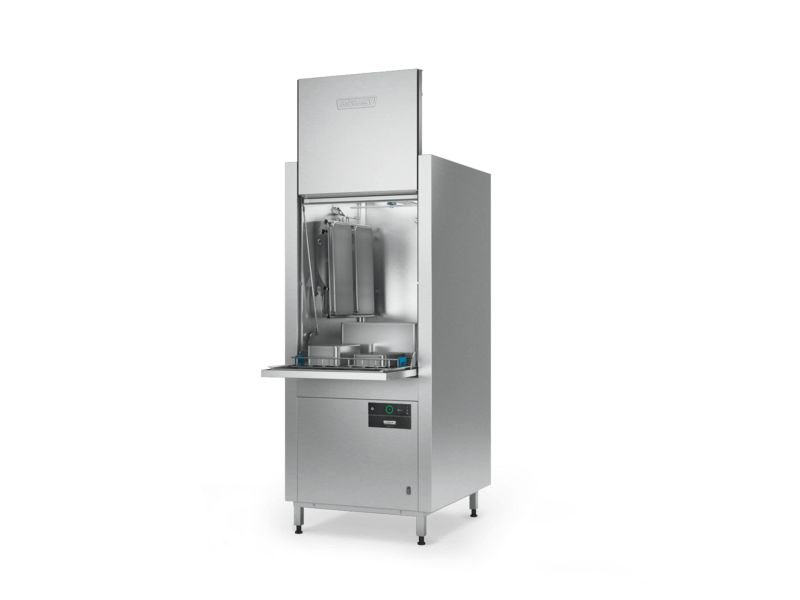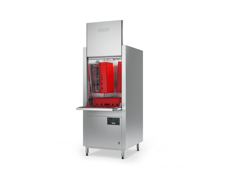 Einschubhöhe: Gleichzeitig können 6 1/1 GN-Schalen oder 4 EN2-Behältern gespült werden